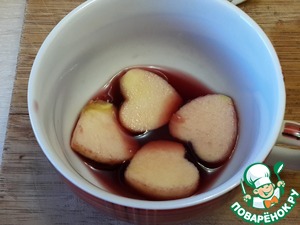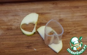 Несколько ломтиков яблок оставьте на украшение. Выемкой вырежьте из них сердечки.