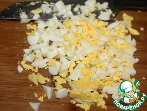 Яйца отварите вкрутую и нарубите.