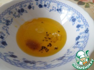 В чашечку наливаем горчичное масло, добавляем лимонный сок, измельченный чеснок и перец. Добавляем по вкусу соль и сахар. Перемешиваем. Заправка для салата готова.