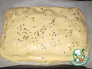 Края защипать, верх смазать желтком с молоком, посыпать кунжутом, чернушкой.