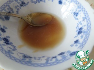 В чашечку выкладываем мед, добавляем лимонный сок и 5 капель Табаско (если любите остренькое, то можно и больше).