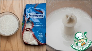 К полученной белой кашице добавить еще литр воды, поставить на средний огонь, довести до кипения и варить до загустения при постоянном помешивании (около 5 минут). Получается густая, слегка студенистая масса. Это своеобразные "рисовые сливки". Их можно хранить в холодильнике. Для приготовления молока, разбавляем "сливки" с водой в соотношении 1:3. Такое молоко по консистенции очень напоминает кисель.