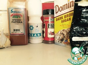 Смешать все ингридиенты и втереть в ребра втереть мелко изрубленный чеснок