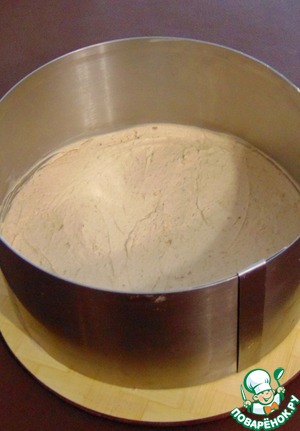 Выкладываем в форму сверху бисквита, ставим в морозилку для застывания.