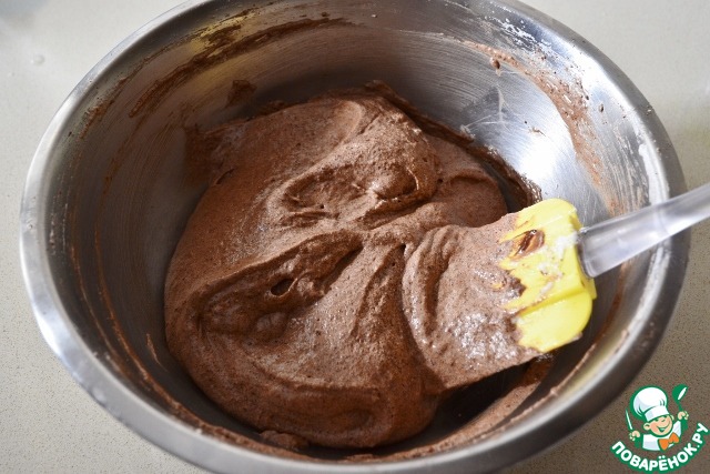 • Аккуратно соединяем сухую смесь с белками и перемешиваем круговыми движениями снизу вверх.