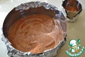 Берем 2 формы - одну диаметром 20 см, вторую - 8 см. Распределяем полученное тесто по формам и выпекаем в предварительно разогретой до 170 градусов 15 минут.