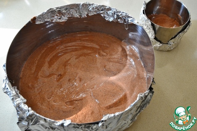 • Берем 2 формы - одну диаметром 20 см, вторую - 8 см. Распределяем полученное тесто по формам и выпекаем в предварительно разогретой до 170 градусов 15 минут.