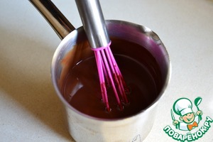 В кастрюльке подогреваем сливки с глюкозой, добавляем шоколад, перемешиваем. Когда смесь немного остынет, добавляем сливочное масло и опять очень хорошо перемешиваем. -