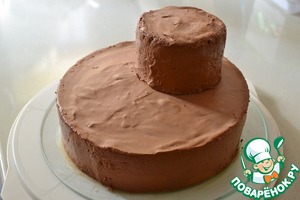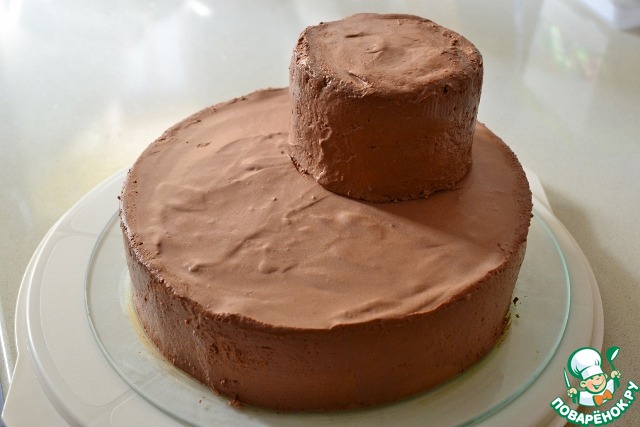 • Освобождаем торты от форм. Маленький тортик ставим сверху большого.