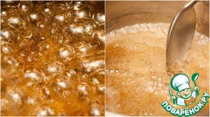 • Мне очень нравится есть такие блинчики с кокосовой карамелью. Для её приготовления соединяем сахар с водой, нагреваем на медленном огне до растворения сахара и доводим до светло-коричневого цвета, не мешая, вливаем подогретое кокосовое молоко, варим 3 минуты, добавляем масло и увариваем до желаемой консистенции. В процессе остывания карамель еще немного загустеет, потом её вновь можно будет разогреть.