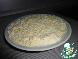 2. Трем на терке печень. Солим, смазываем майонезом.