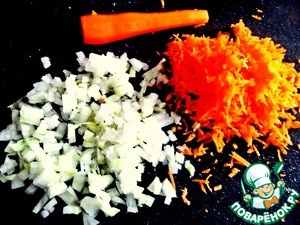 Лук измельчаем, морковь трём на мелкой тёрке.