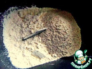 Смешиваем в хлебопечке два вида муки и сухое молоко.