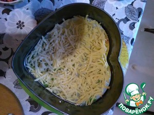 Трем сыр на терке и укладываем его в форму первым слоем.