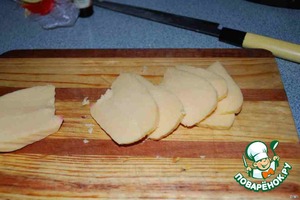 Сыр режем пластинками - я люблю потолще, чтобы сыр аж вытекал!