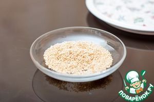 Кунжут поджариваем на сухой сковороде до золотистого цвета.