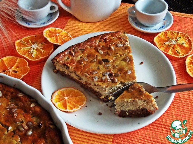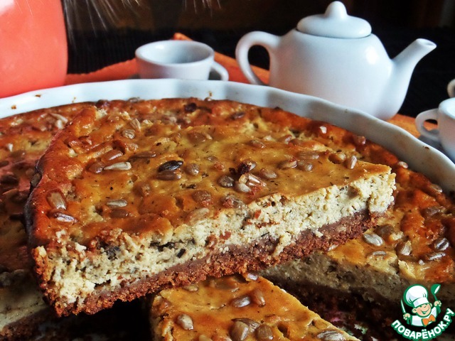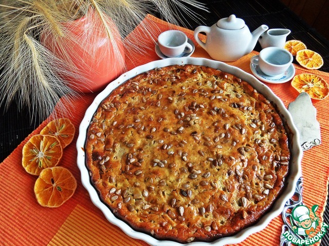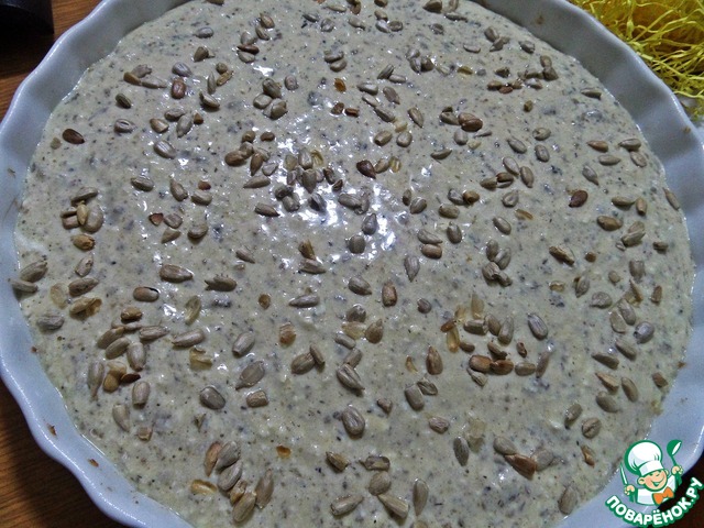 Заливаем начинкой, посыпаем верх семечками.