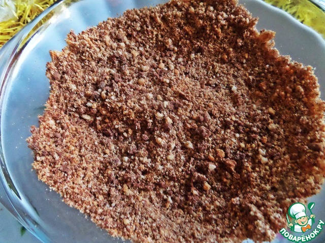 Для основы печенье поломать. У меня половина песочного и половина шоколадно-овсяного.