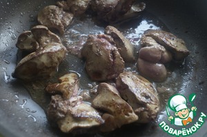 Печень обжарить на разогретом оливковом масле, на большом огне около 5 минут. Печень остудить.