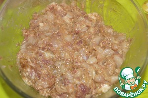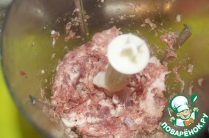 Свинину и говядину превратить в фарш при помощи блендера или мясорубки.