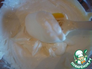 Белки взбить с солью до пиков и осторожно вмешать в творожную массу