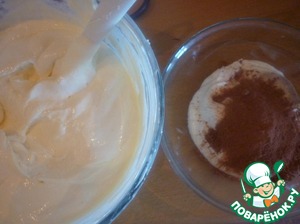 Отложить 3 ст. л. творожной массы и смешать с какао. Хорошо перемешать