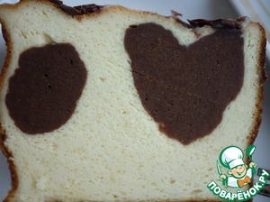 В выстланную бумагой для выпечки форму выложить тесто. Из шоколадно-творожной массы сформировать сердечки и шарики и воткнуть в тесто. Шоколадная масса не плотная, поэтому пришлось немножко повозиться. ( в эту массу можно добавить немного муки)