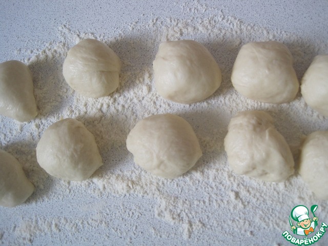 Готовое тесто делим на маленькие кусочки около 20 граммов.