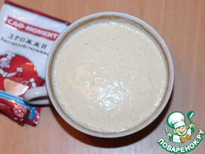 1. В теплом молоке развести дрожжи, затем добавить 1 ч. л. сахара, 1 ст. л. муки.