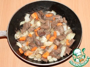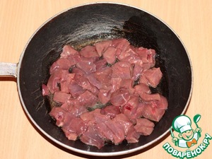 4. Приготовим фарш. Нарезаем кусочками печень и обжариваем на сливочном масле