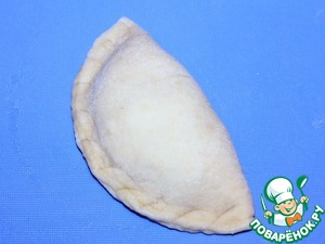 14. свернуть пирожок в виде равиоли, защипнуть края теста. Выкладываем заготовки на смазанный маслом противень. Ставим противень в духовку, включаем мin температуру 40 C и даем пирожкам увеличится в 2 раза (20-30 минут).