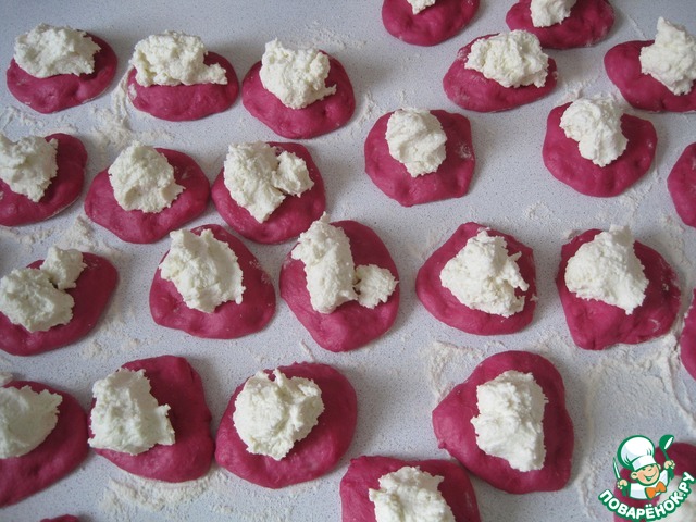 Творог смешиваем с сахаром, яйцом, ванилином и мукой.
