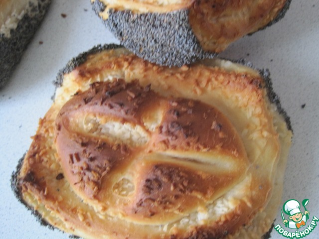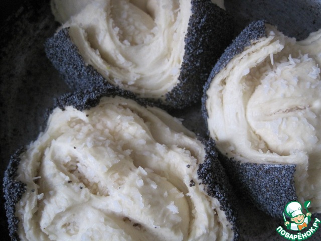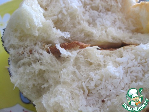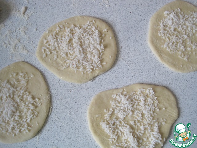 Готовятся булочки просто, получаются слегка слоеные, с кокосовой прослойкой. Тесто приятное на ощупь, послушное и хорошо держит необходимую форму, при этом остается мягким и пористым.