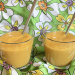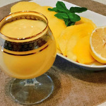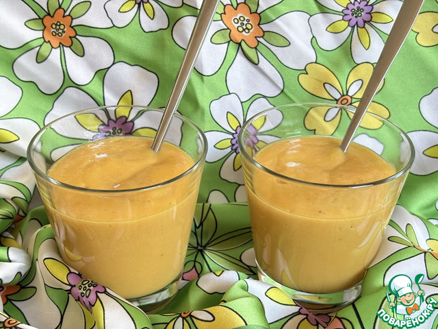 Выложить в блендер содержимое банки вместе с сиропом. Сверху выложить сгущенку и полить лимонным соком.