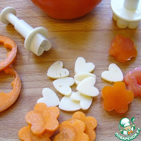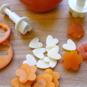 • Вырезать при помощи плунжера цветочки и сердечки.