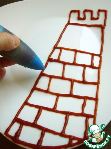 • Кетчупом нарисовать башню для Рапунцель.