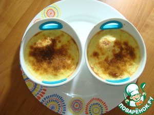 В ступке разбила коричневый сахар, добавила в него корицу молотую и присыпала крем-суфле. Подала.