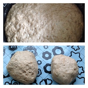 Тесто разделить на две части. Кстати, тесто не липнет к рукам и не требует муки для раскатки и подпыла стола. Получится у нас 2 кирпичика.
