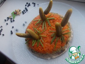 Украшаем по желанию. Я сделала пальмочки из корнишонов, с помощью зубочисток. Приятного аппетита!