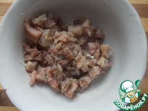Берем вот такую рыбку - сайру. Можно заменить на копченую ставриду или подобную рыбку.