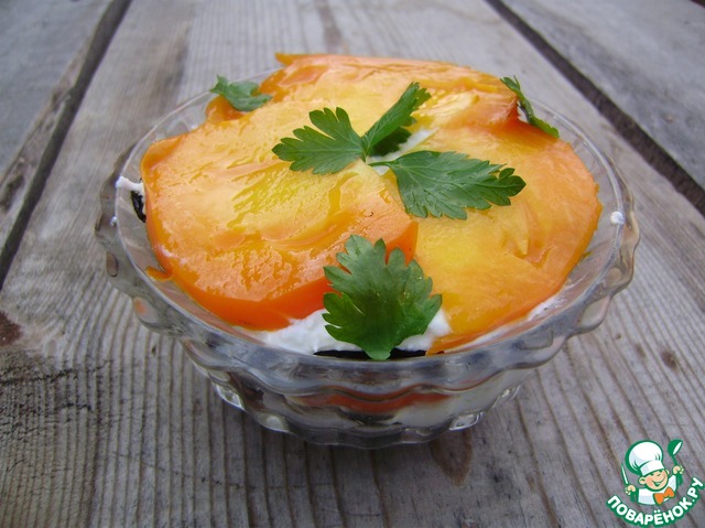 на помидоры выкладываем оставшуюся часть творожной смеси.