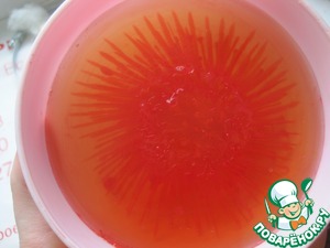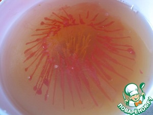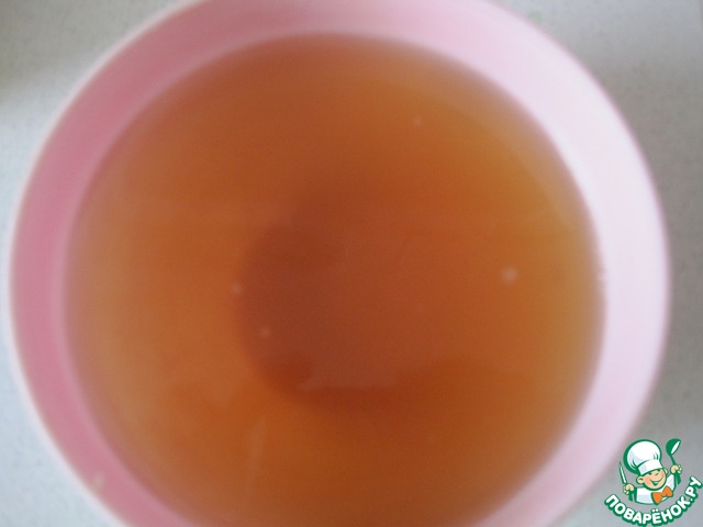 Сок я взяла покупной из коробки "Яблоко осветленное". Но если вы хотите, чтобы цветы четко выделялись приготовьте лимонное желе с добавлением сахара и воды, оно будет прозрачным как вода.