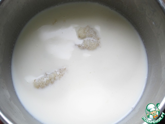 Готовим молочное желе. Молоко вскипятим с сахаром, охлаждаем до 60*растворяем замоченный желатин и ванилин.