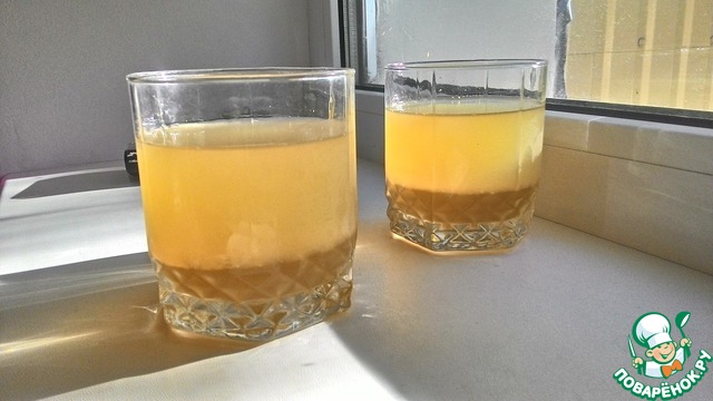 Добавить быстрорастворимый желатин (при необходимости чай можно немного подогреть) и перемешать. Чай процедить и разлить по бокалам. Поставить в холодильник минимум на 1-2 часа.