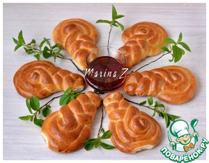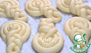 Укладываем витушки на противень, застеленный бумагой для выпечки, накрываем пленкой, смазанной растительным маслом, даем расстояться около 30 мин. Смазать взбитым яйцом с 1 ч. л. сахара и 2 ч. л. воды.