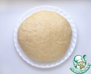 ... добавить теплое молоко и сахар, размешать. Масло сливочное распустить (в микроволновке), добавить к основной массе. Смешать. Добавить просеянную с ванилином муку (550-600 г). Хорошо вымесить тесто на рабочей поверхности. Муку добавлять в несколько приемов, тесто не забивать мукой, лучше перед разделкой подсыпать при необходимости. Сначала мешаем ложкой, потом руками. Тесто замешивается быстро - становится очень эластичным, мягким, но не тяжелым. Переложить тесто в пакет, плотно закрыть и убрать в холодильник на 4 часа.
