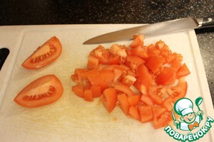 Нарежем мелко 1 крупный помидор или 2 мелких.