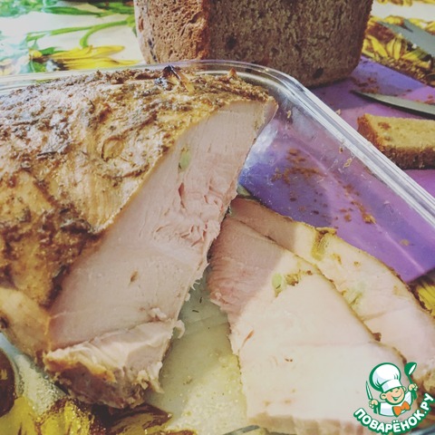 Очень вкусная, нежная и ароматная "буженина" из мяса индейки! Не секрет, что зачастую буженину готовят из свинины... Но, думаю, что этот рецепт может заинтересовать любителей "белого мяса". P.S. Время приготовления указано без учета маринования мяса.