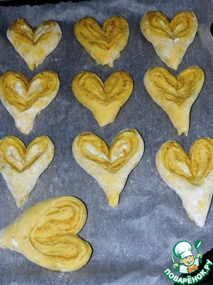 В середине разрезаем, оставив 2 см там, где кончики. Получаются вот такие сердечки!