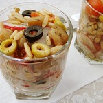 Предлагаю вам салат, в состав которого входит паста Орзо. Она похожа на рисовые зернышки. С этой пастой получаются потрясающие салаты, легкие и полезные. Есть и еще одно название Орзо- Пунталетте. Очень полезная и вкусная паста из твердых сортов пшеницы, употребляя которую, как говорят в Италии, можно еще и похудеть...